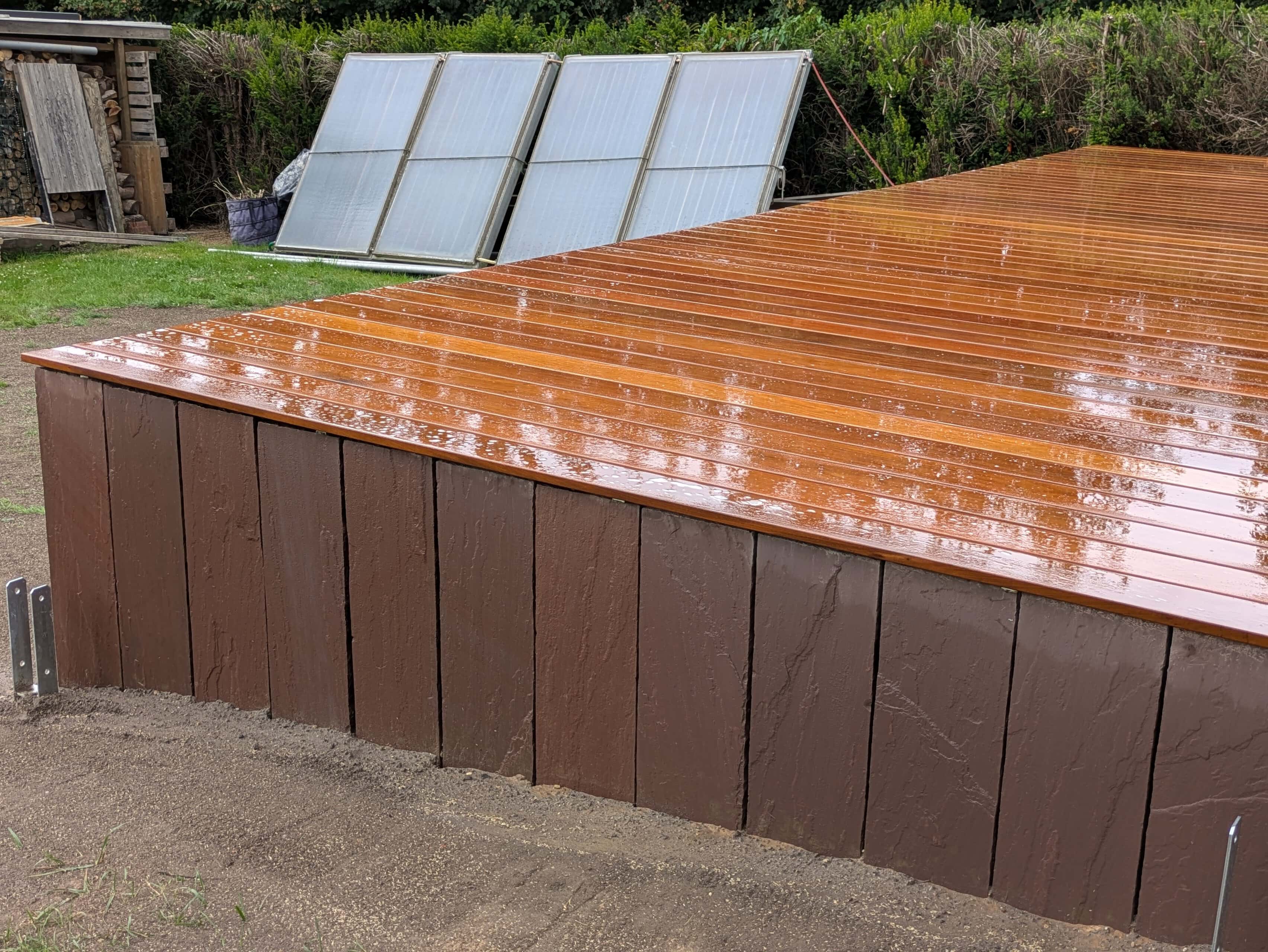 Pooldeck aus IPE-Holzdielen mit Rotem Sandstein